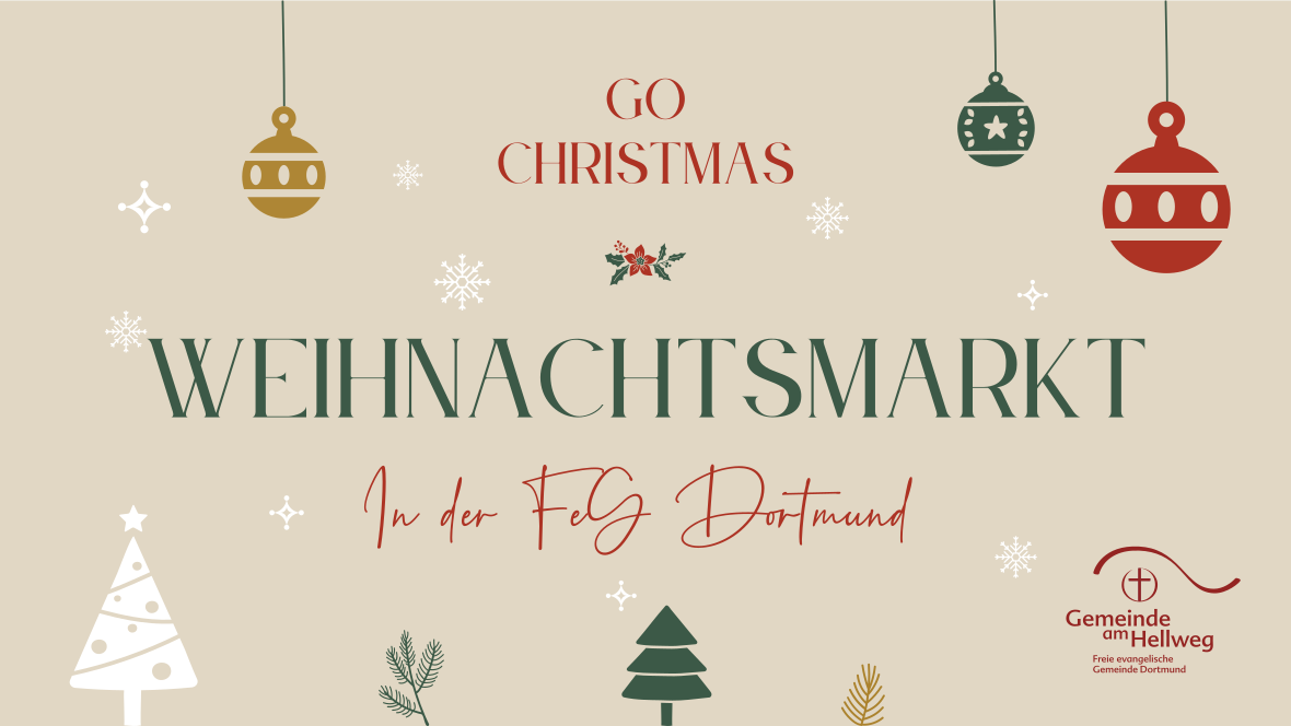 Herzliche Einladung zu unserem Weihnachtsmarkt »Go Christmas« am Samstag, 29. November 2025 von 14–18 Uhr an und in unserem Gemeindezentrum am Körner Hellweg 6 (bei Aldi)!